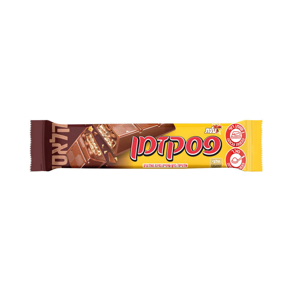 Hazelnut cream wafer covered milk chocolate bar. Product of Israel. Kosher